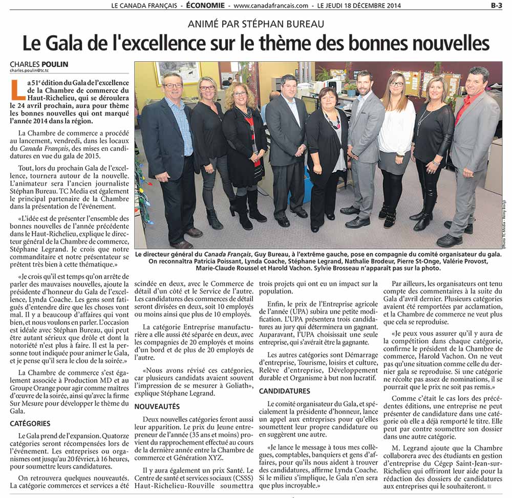 PMD is charged to design the audio-visual realization of the Gala of Excellence 2015 the Chamber of Commerce of Haut-Richelieu. PMD will also produce several promotional videos that will be screened during the evening. A multi-camera capture with video control, lighting and sound are just us technical aspects that will support the company.