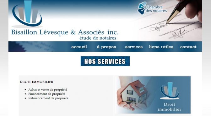 Websites PMD at the notary’s office 29/01/2014 PMD Leave a comment The notary office Bisaillon Lévesque & Associés inc. called PMD to build its website. VISIT THE WEBSITE